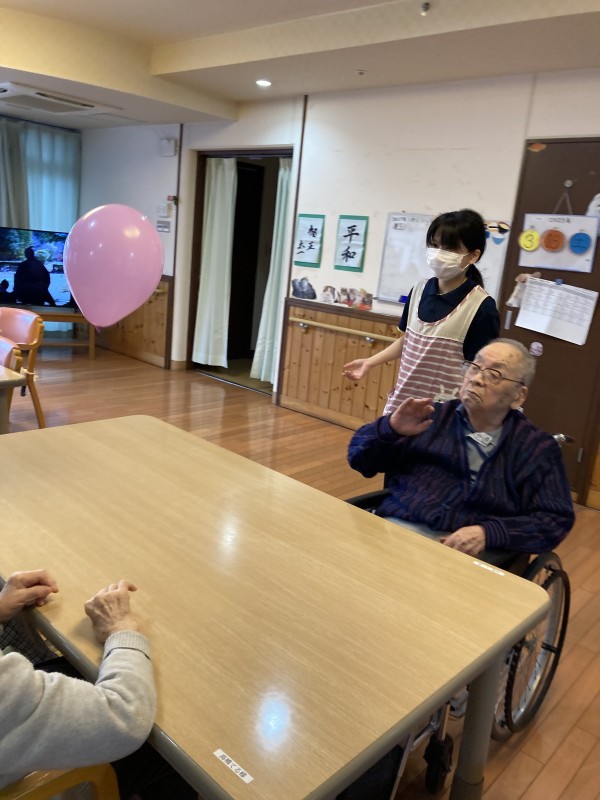 さて、そんなポカポカ陽気になってきましたので、2階の皆さまで風船バレーを行うことにしました!