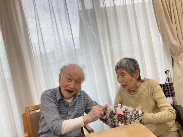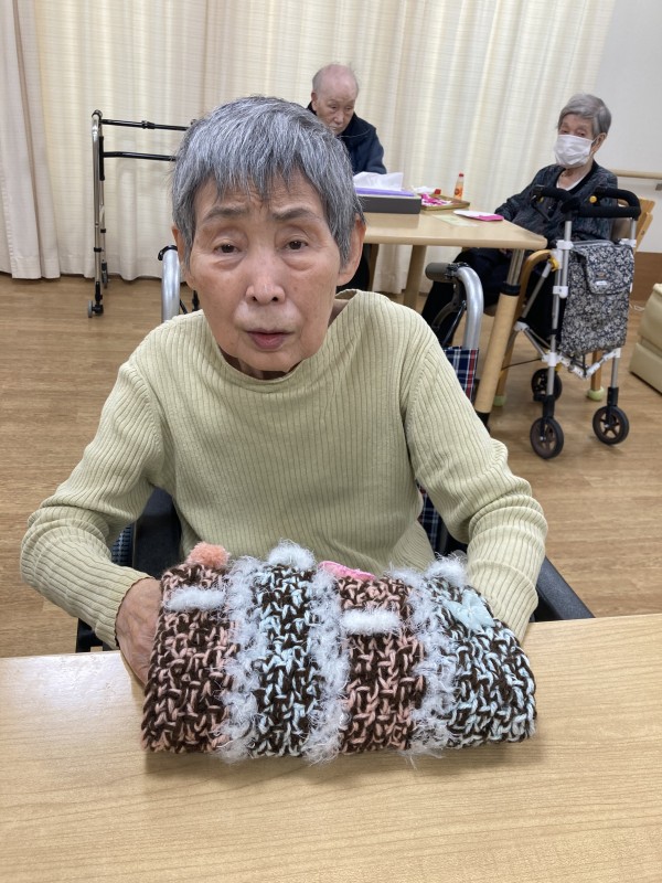 今回認知症マフをいただきましたので、ご利用者さんに早速触っていただきました。