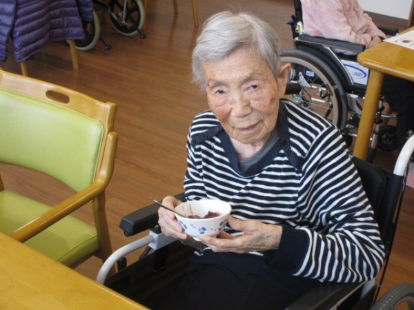 餡子のおはぎを手作りしましたのでみんなで食べましょう! 「おはぎを食べるの?? はじめてだわ?」「たべていいの? 嬉しい、ありがとう」と笑顔で召し上がられました( ^ω^)・・・ 『美味しかったわ。お彼岸におはぎを食べるのね…?』とお喋りしながら楽しまれていました!(^^)!
