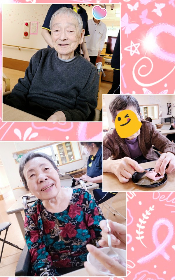 今回は、事業所の近くの和菓子屋さんから桜餅を買ってきましたぁ~。