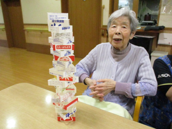 牛乳パックタワー積み重ねゲームです(^_-)-☆