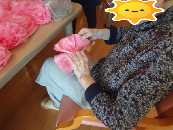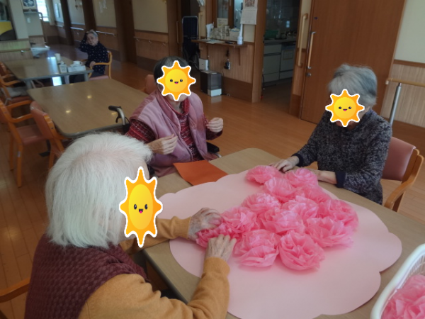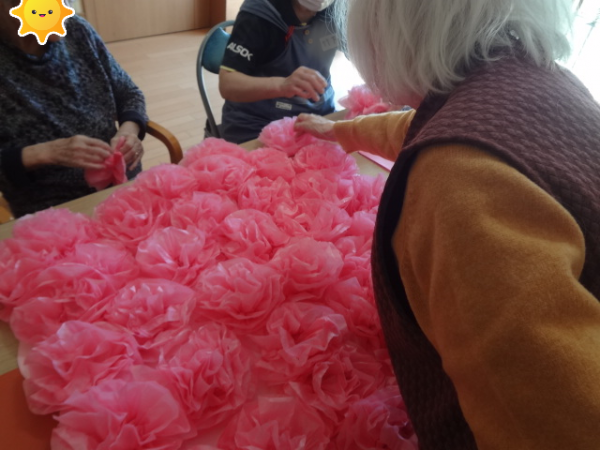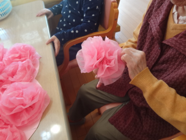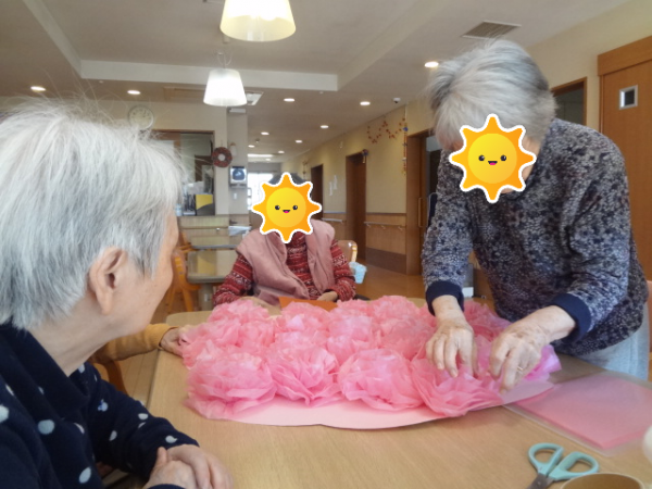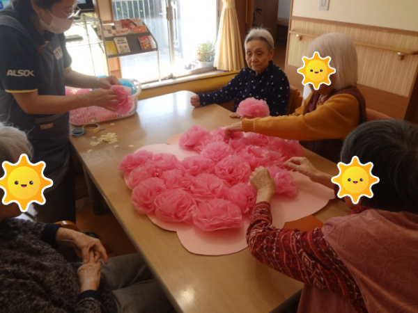 今日は、桜の壁飾りを作っているご様子をお届けします(*^-^*)