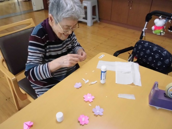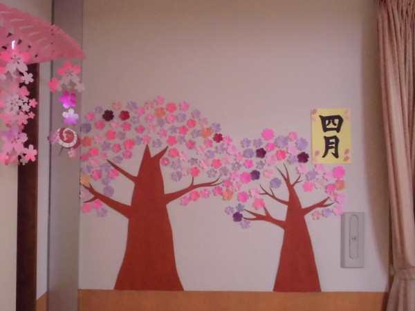 新館の皆様と桜の木を作りました♪
