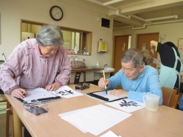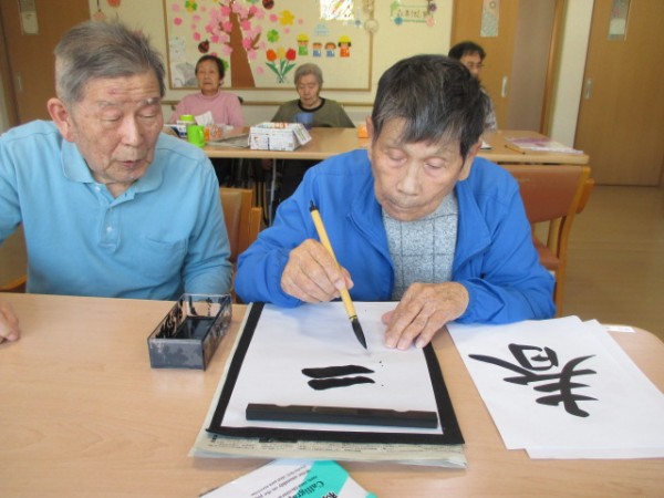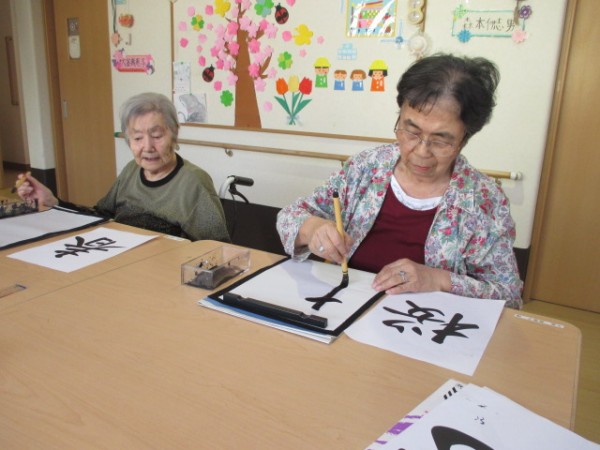 今回は、レクリエーションの一環で習字に