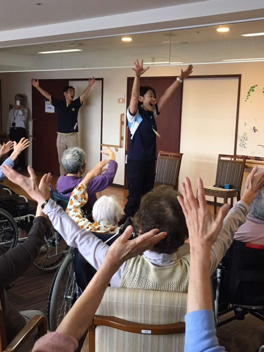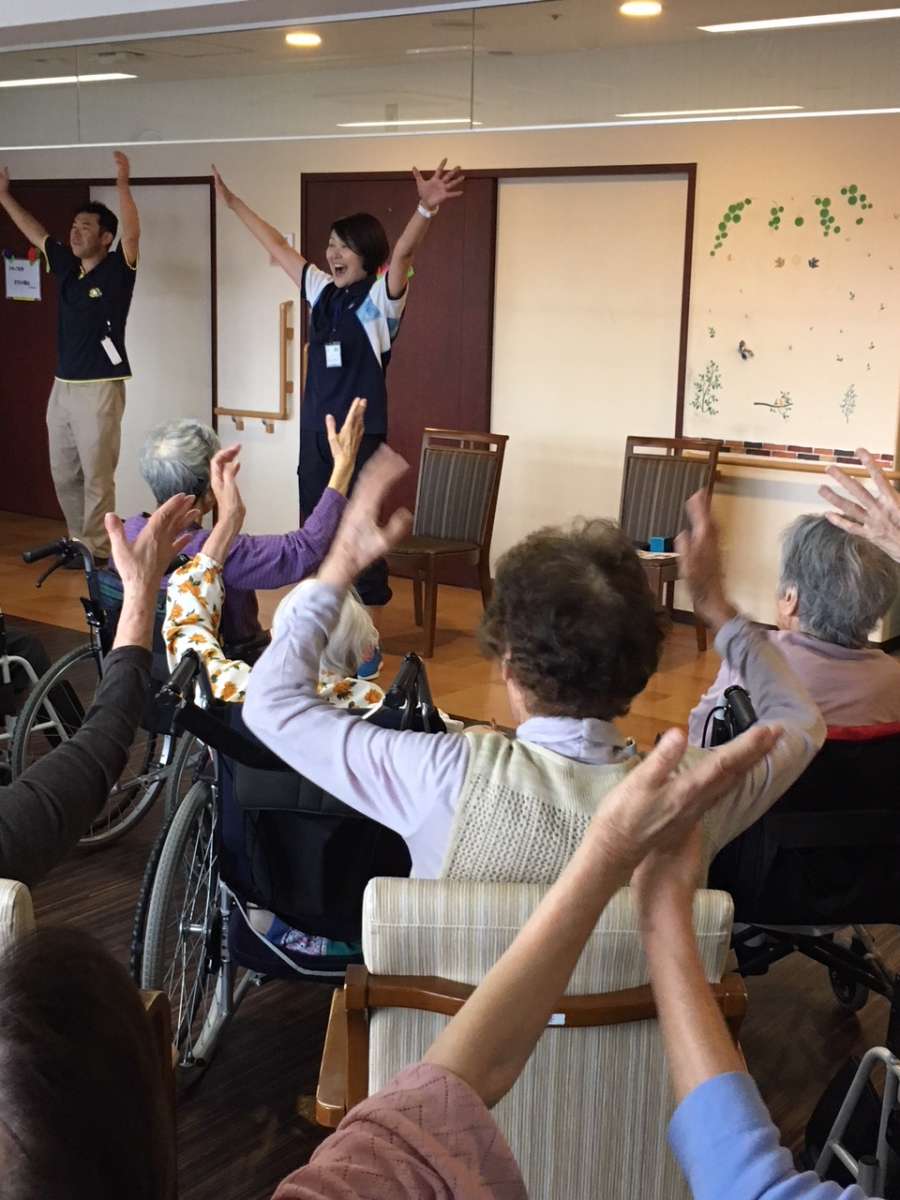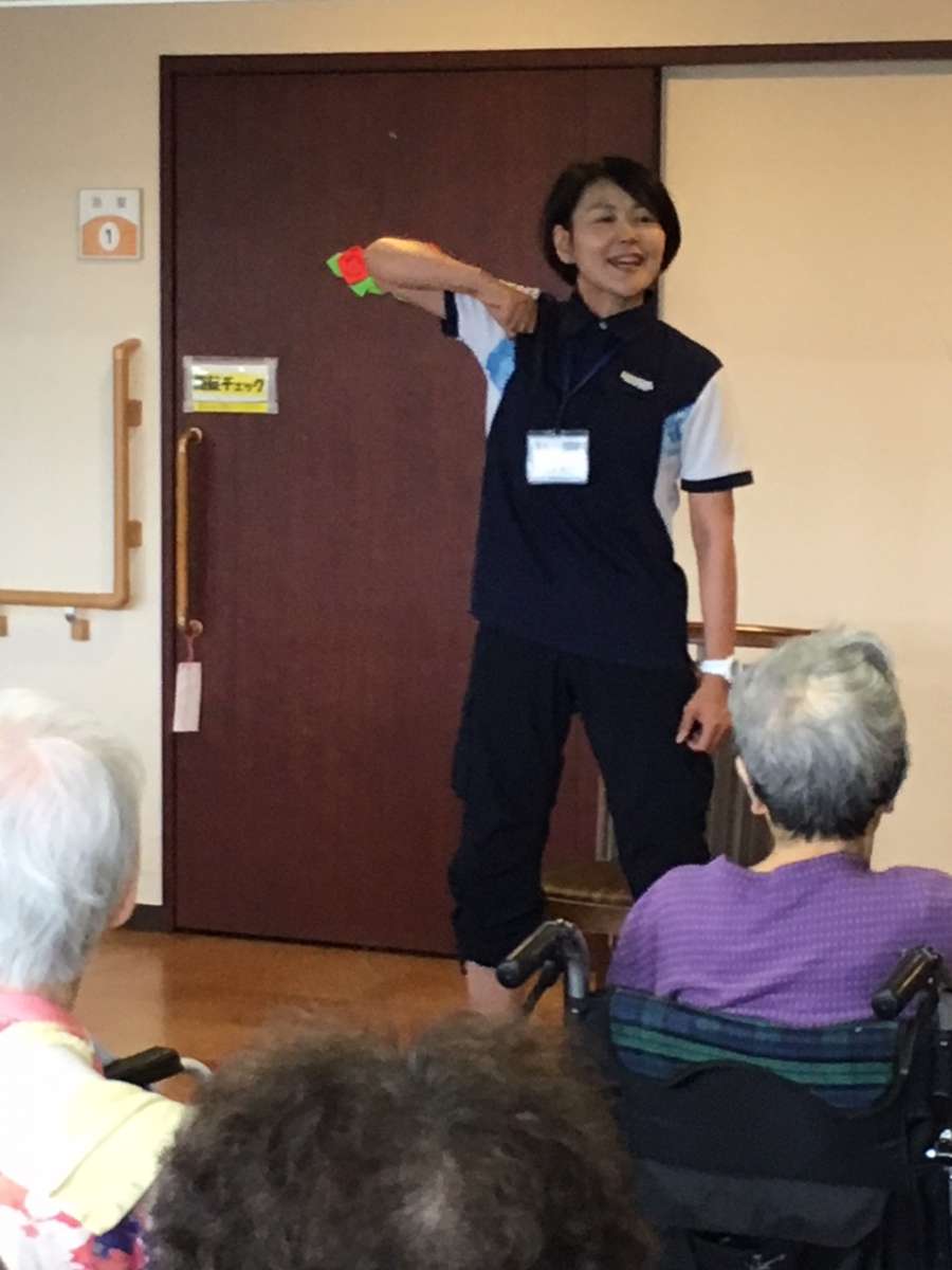 健康椅子体操とは、椅子に座りながらでもできる体操ながら・・意外とハードな内容&脳トレも組み込まれているプログラムになります。それもそのはず、講師はセントラルフィットネスジムから来られた体操の先生!通る声でリズミカルに「ワン・ツー」「ワン・ツー」と参加した職員も思わず引き込まれてしまう内容で、あっという間の1時間でした!!