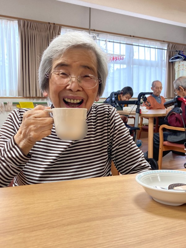 コーヒーが大好きな男性入居者様、T様(写真中央)は
