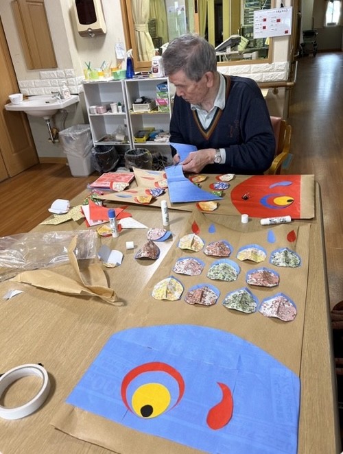 今回は、フロアにぼ飾る鯉のぼりをご利用者様と職員と協力して