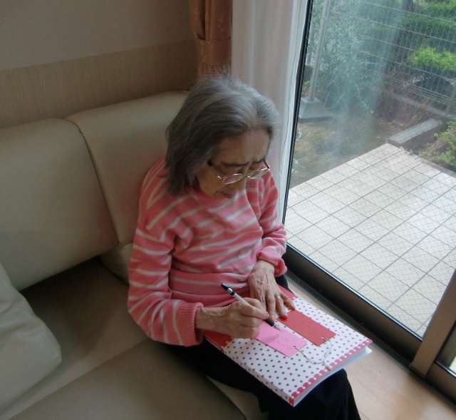 入居者様へ短冊に願い事を書いてもらって、手分けして作った飾りをチェックしたり手直ししたり・・・