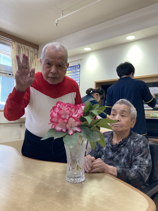 スタッフからお花のプレゼントが届き、皆さんと一緒に写真を撮りました。