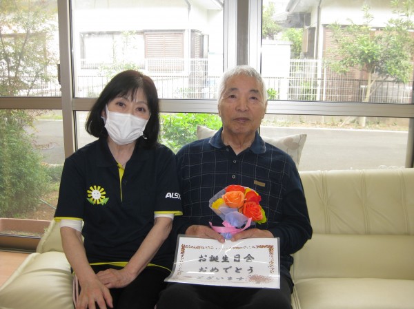 4月 1階1名の方のお誕生日をお祝いしました。85歳です。【おめでとうございます! 元気でお過ごしください!!】 は~い、よろしくお願いいたします。と話されました。お誕生日の歌を歌いお祝いをして写真を撮りました(^^♪ 嬉しそうに笑顔一杯でした( ^ω^)・・・