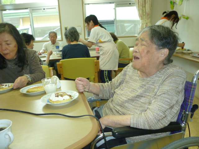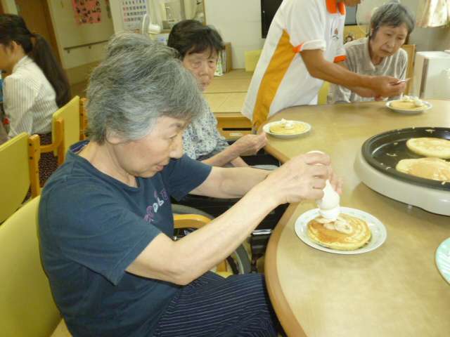 パンケーキ、ホットケーキは手軽にできてこういったレクでは本当に優等生ですね。