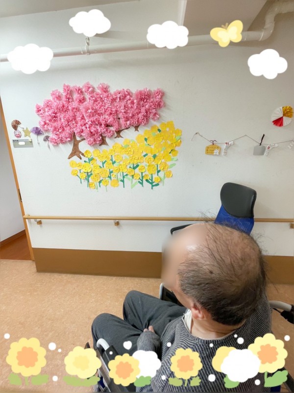 4月はH職員の担当で利用者様と一緒にH職員の地元の桜堤をイメージして作ってくれました。