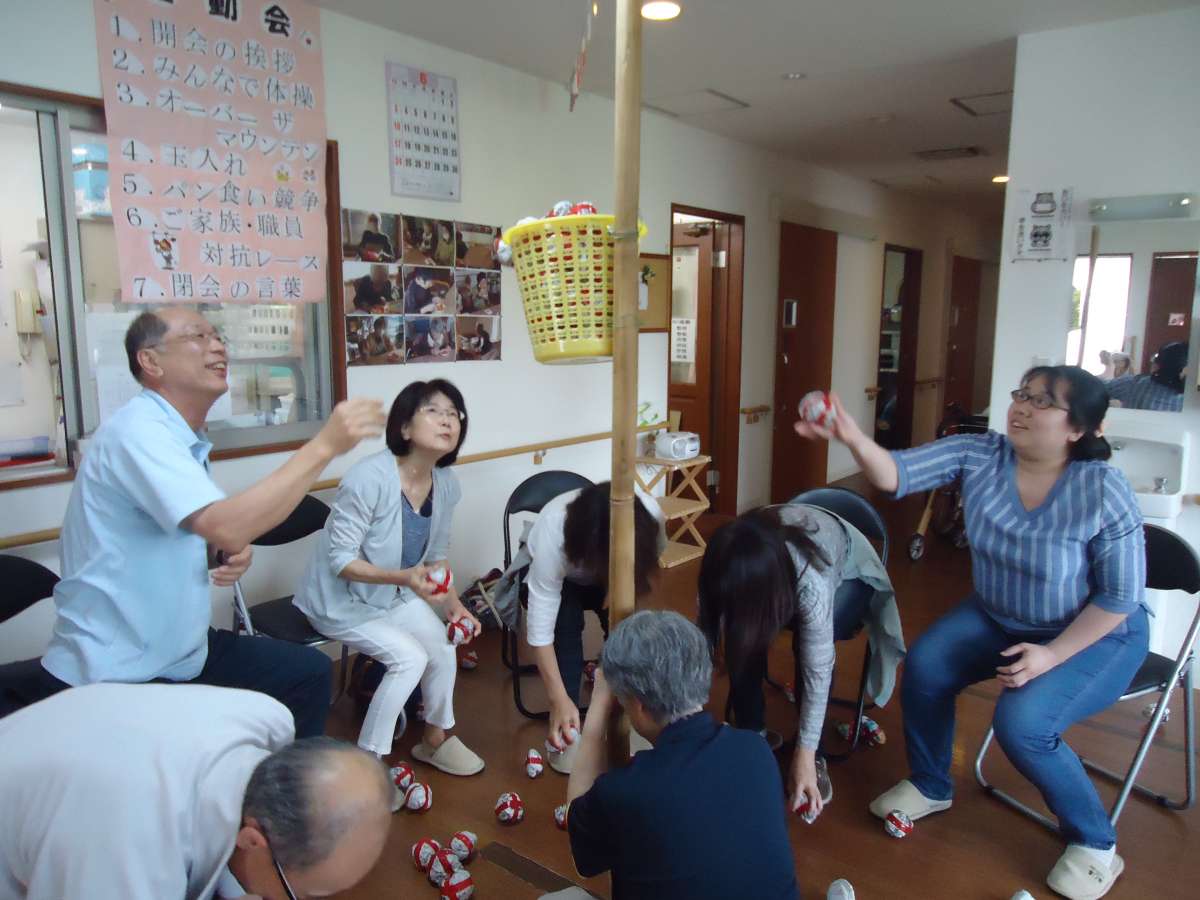 恒例のパン食い競争と玉入れは御利用者様・御家族・職員全員が参加して大いに盛り上がりました。
