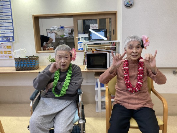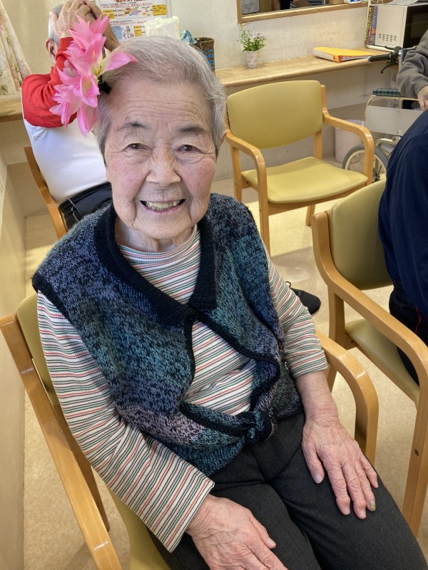 華やかに髪飾りとレイを付けて頂きとても嬉しそうに