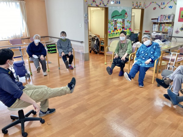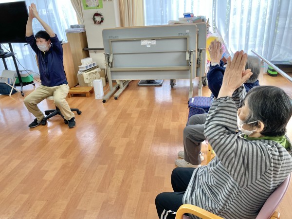 1回ゲームで、目標達成できなかったら5分位の運動レクを皆でしていきました。