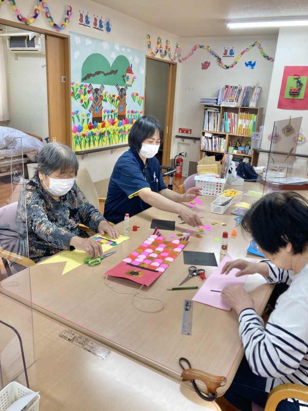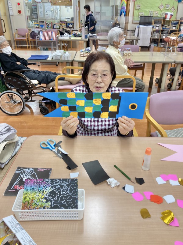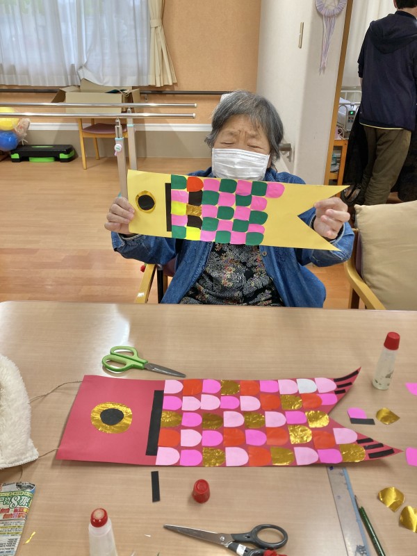 余暇活動の様子です。こいのぼりを作っていた様です。