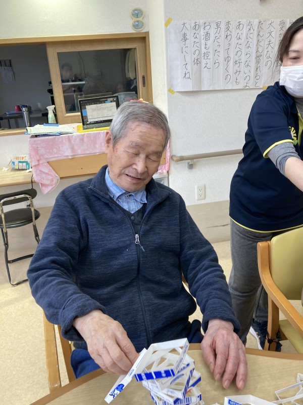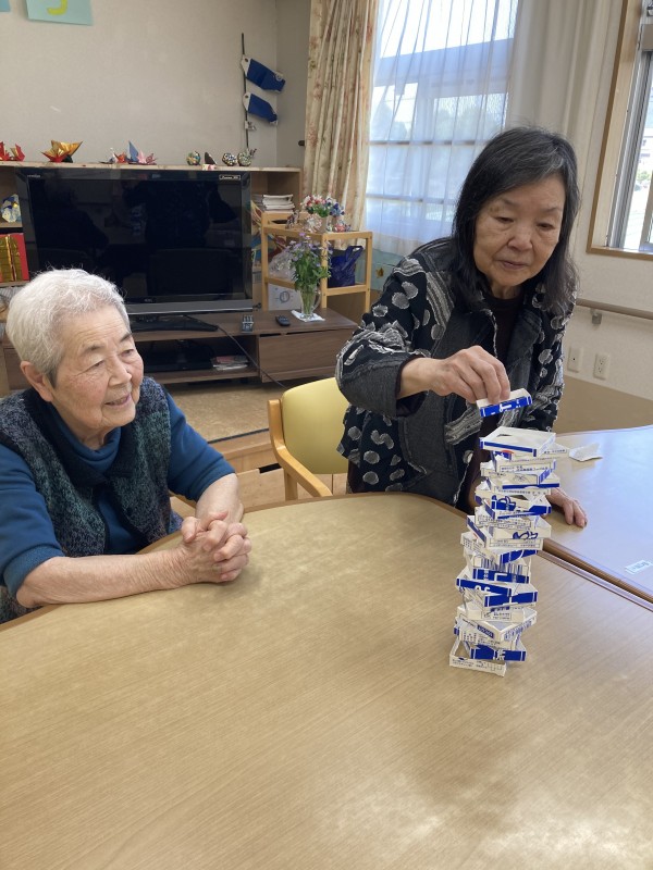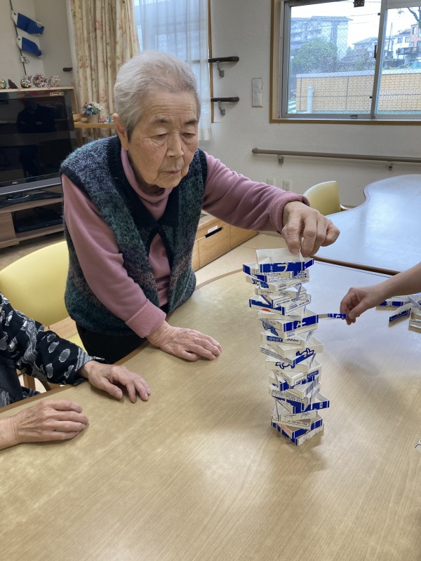 それも 職員手作りの”牛乳パックジェンガ”です♪