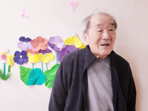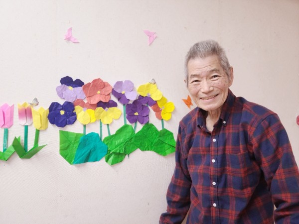 M様が「これは紙か?」と尋ねて来られたので、折り紙で職員が作った事を伝えると