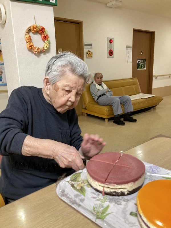 ケーキバイキングをするためにもご利用者様でケーキのカッティングをして下さいました(#^^#)