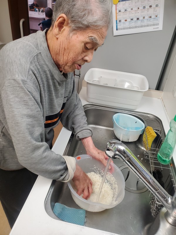 今回は利用者様にお米を洗って頂いている様子を紹介します