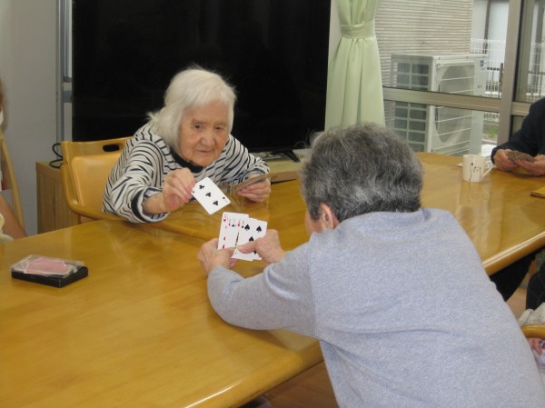 こんにちは! グループホームみんなの家・あきがせの介護ブログです! よろしくお願いいたします。今日はみんなでトランプ遊びを行いました。その時のご様子をお知らせいたします!