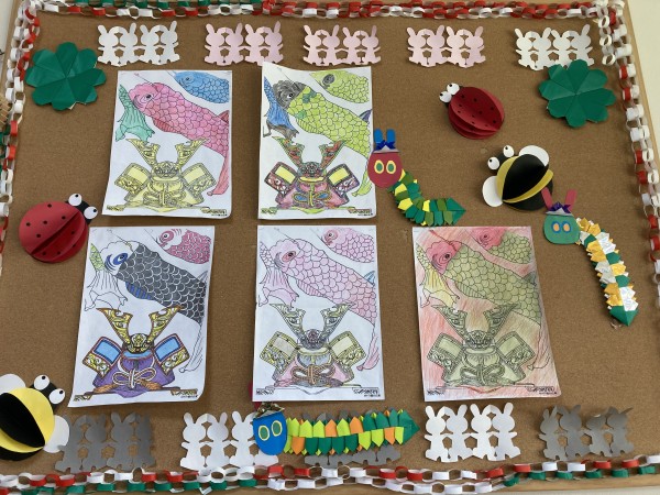 鯉のぼりの塗り絵、5月の花も完成して飾られていますよ。