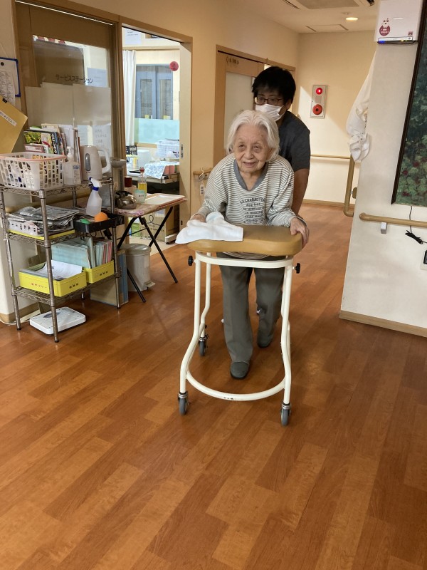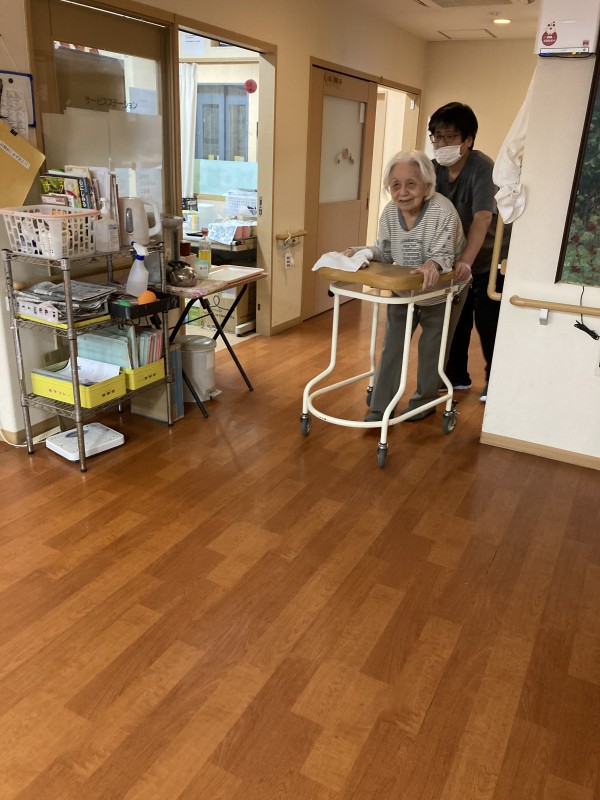 無理をせず屋内の歩行は積極的に職員も一緒に行います。
