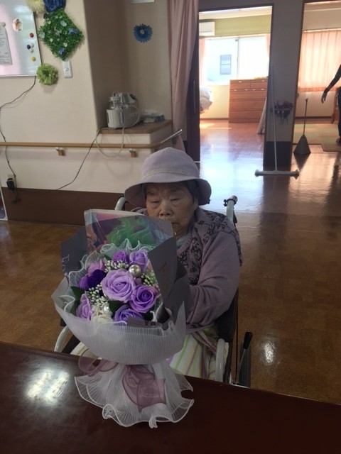 子ども様3人様が久しぶりに面会に来られ、娘様が、「少し早いけど、母の日のプレゼント」とお花を渡すと、「わー綺麗!!嬉しい!ありがとう!!」と涙を浮かべて、喜んでおられました(*^▽^*)。ご家族の皆様、お時間が許すようであれば、是非、元気な姿を見せにお越しくださいませ(^^♪。