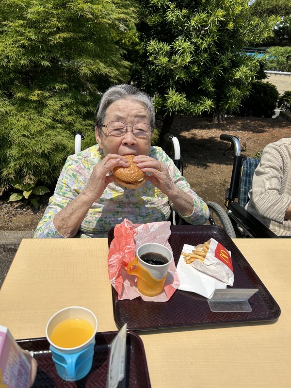 マクドナルドのハンバーガーは皆さんに大好評で「久しぶりに食べられてうれしかった」「今日は何かのお祝いなの?」「こんなにおいしいなら毎日でもいいよ」なんて声を頂きました。