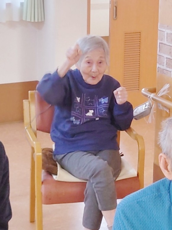 いつもは「俺はやらないよ~」と消極的なM様も、リモート体操の時はニコニコ笑顔で張り切ってます٩( ''ω'' )و