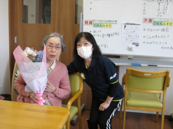 こんにちは! グループホームみんなの家・あきがせの介護ブログです! よろしくお願いいたします。 母の日にお花のプレゼントをお送りくださりました。そのご様子をお知らせいたします!