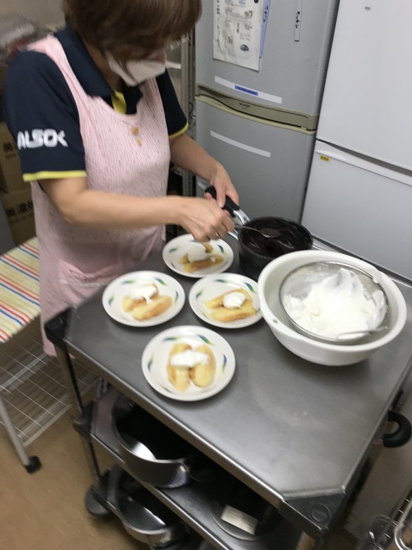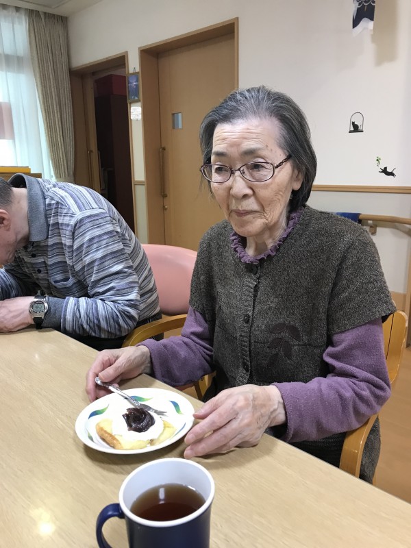 手作りフレンチトーストのおやつの後に1人ずつ感謝しながら