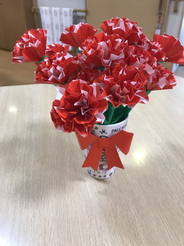 スタッフ手作りの折り紙カーネーションです(#^.^#)
