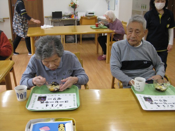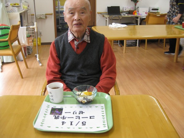 おやつにコーヒーと牛乳のゼリーを召し上がっていただきました( ^ω^)・・・ 「美味しそうね! こういうのいいね!」と褒めておられました(^^♪ さっぱりして美味しかった、ご馳走様でした!
