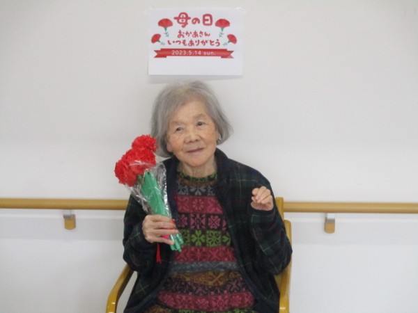 5/14母の日レクを行いました。職員からカーネーションをいただき嬉しそうでした( ^)o(^ ) 「お母さんありがとう!」照れくさそうでした(笑) 昔はこうだったのよ?とか色々なお話しをされて今いました( ^ω^)・・・ カーネーションのお花の力って凄いです~ みんなを元気にしました!! 楽しまれたひと時でした(^^♪