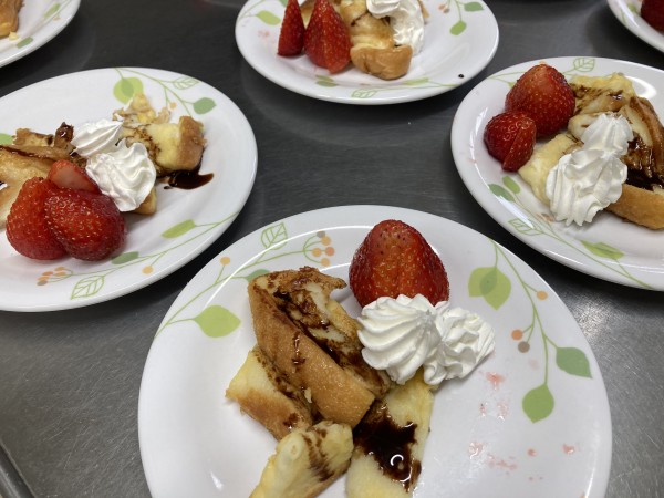 おやつにはフレンチトーストとフルーツなど盛り合わせて召し上がっていただきました。