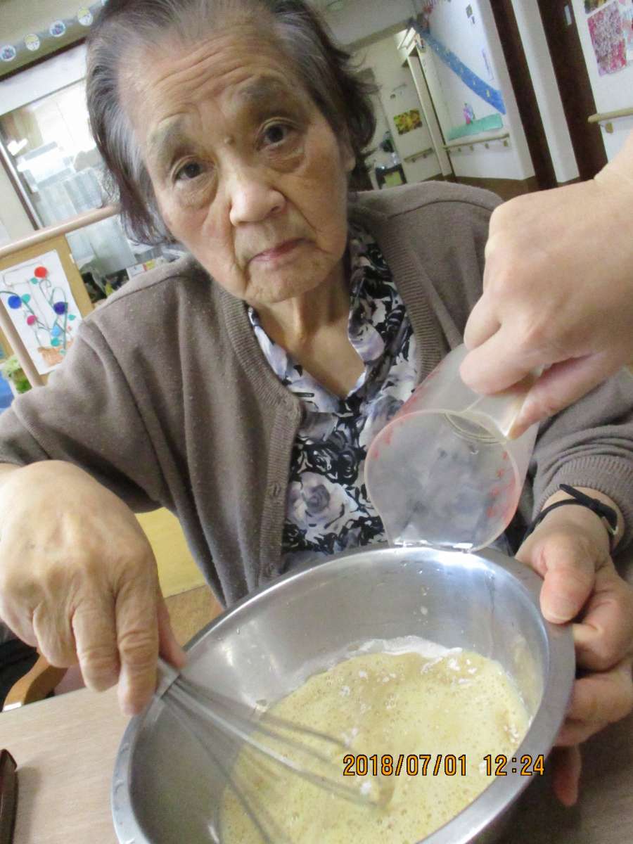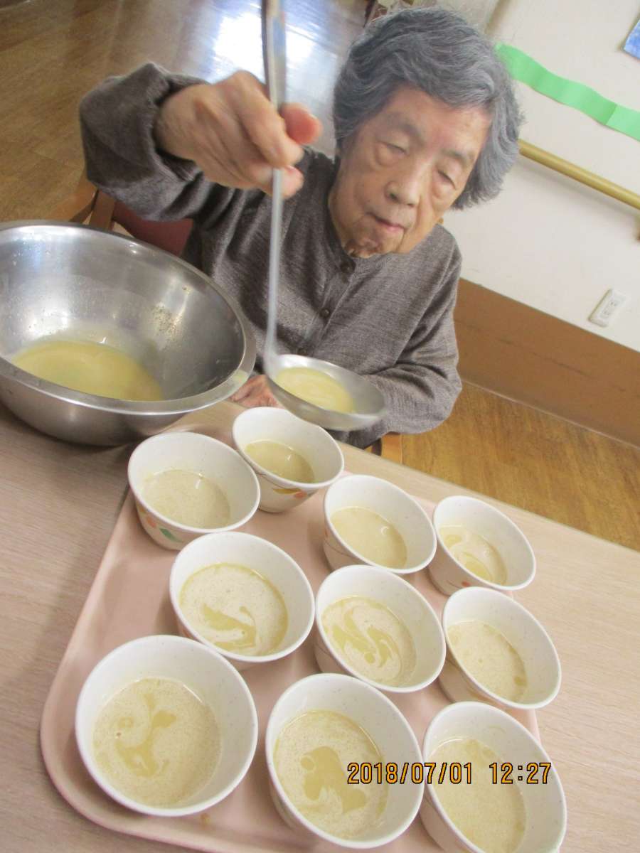 この日はよぉ~く冷えたプリンを、グループホームみんなの家 志木中宗岡のご利用者様に作っていただき