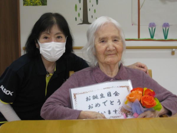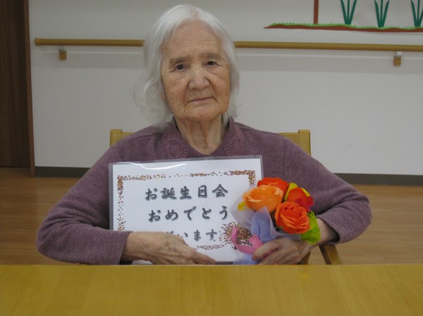 お誕生日おめでとうございます!5月で90歳おめでとうございます! みんなでお祝いをしました( ^ω^)・・・ お誕生日の歌を歌い、若いころはこうだったのよとお話ししてくださいました(^^♪ ニコニコされ嬉しそうでした。【元気に過ごしていたいと思います】と話されました!!
