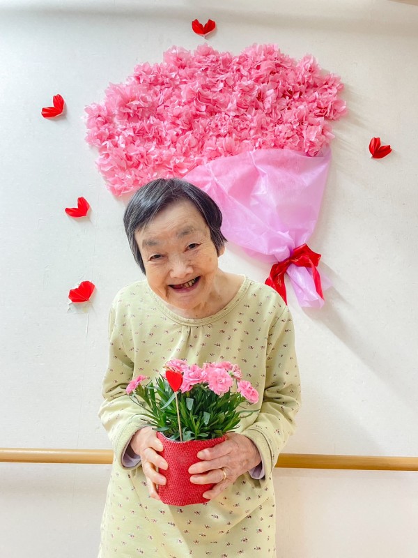 K様は、母の日の数日前に娘様ご夫妻が面会に来られ