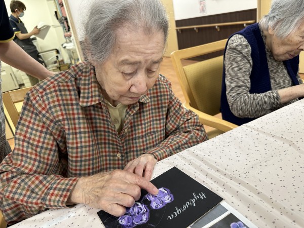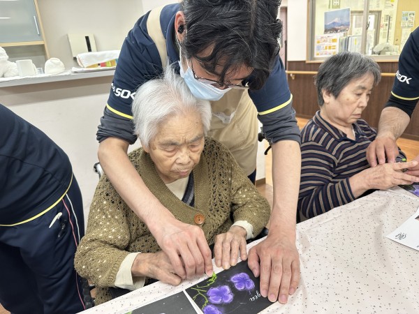 難しい部分は、職員がお手伝いしますので、ちょっと手先を動かすことが難しい方も参加しています。