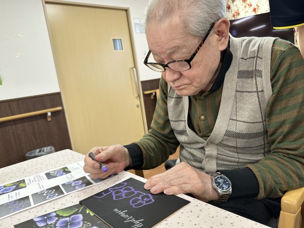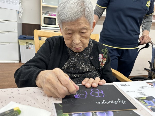 ご家族様が後日面会に来られた時に、あまり話をされない方が、チョークアートに参加したお話を簡単ですが、