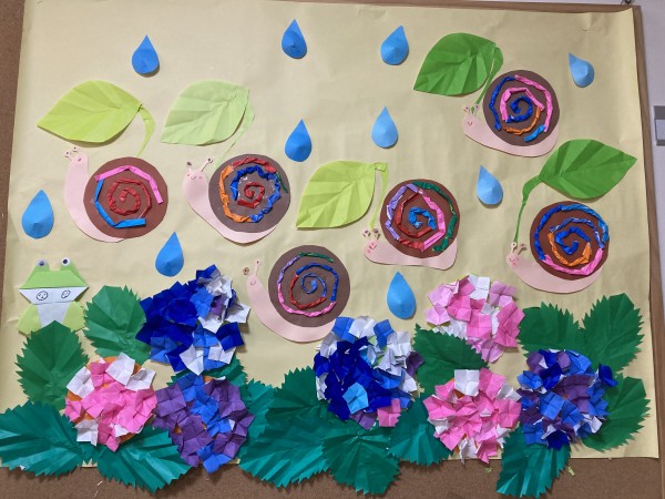 カラフルなカタツムリと紫陽花が出来上がりました。