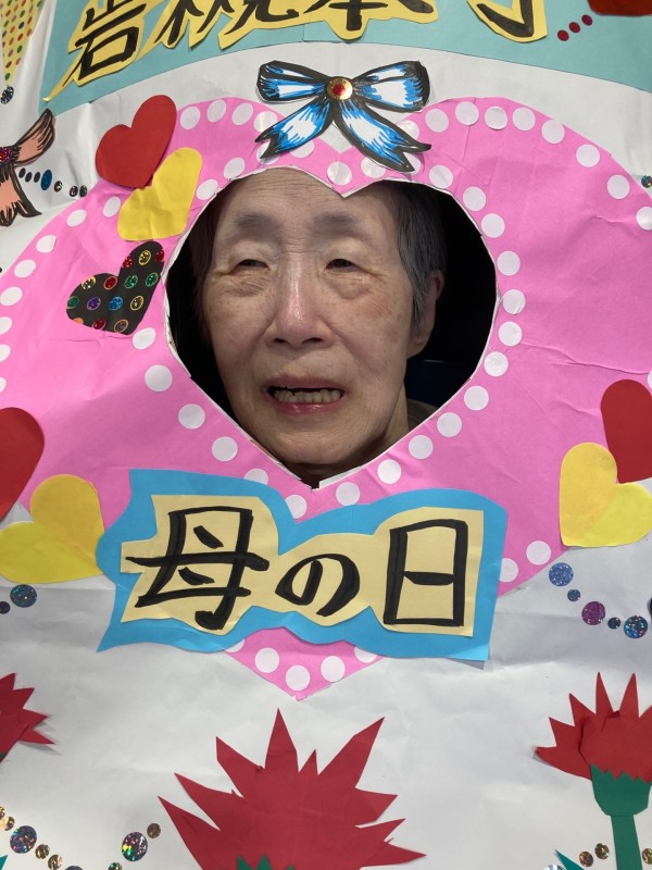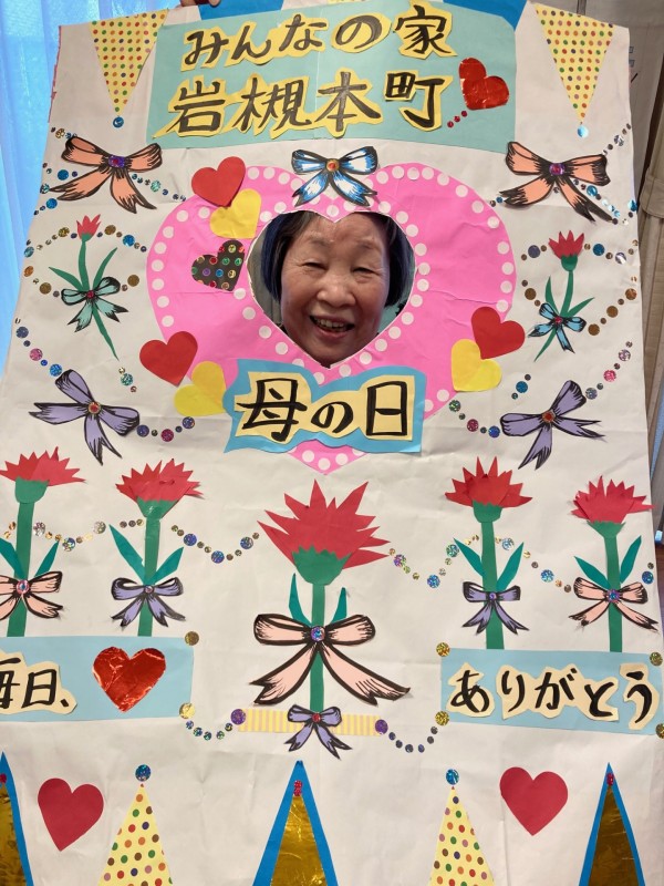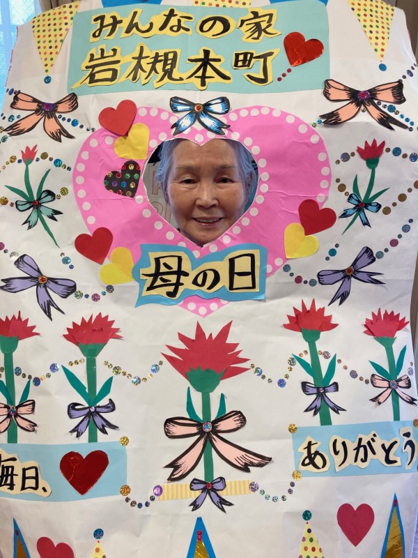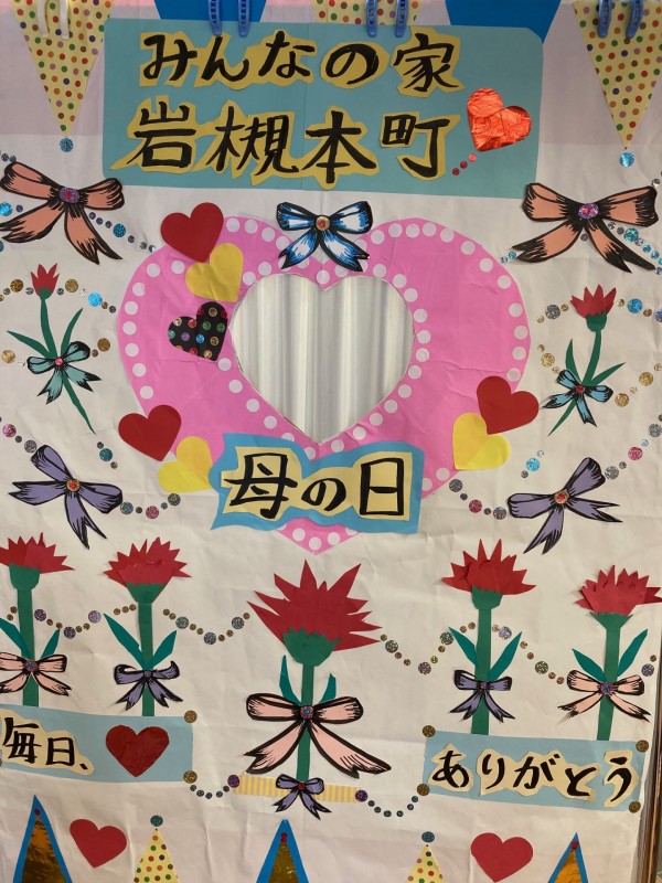 ↑職員が、手作りの母の日オリジナルパネルを作成し、お祝いをかねて