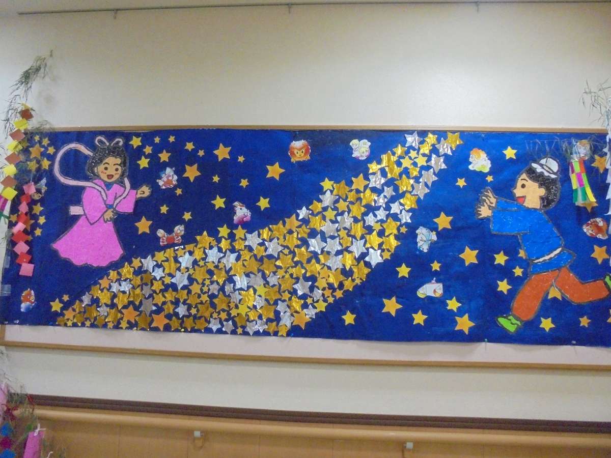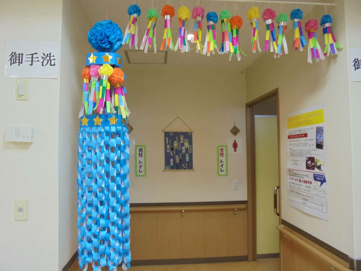 トイレ前のスペースには七夕飾りをぶら下げました!!