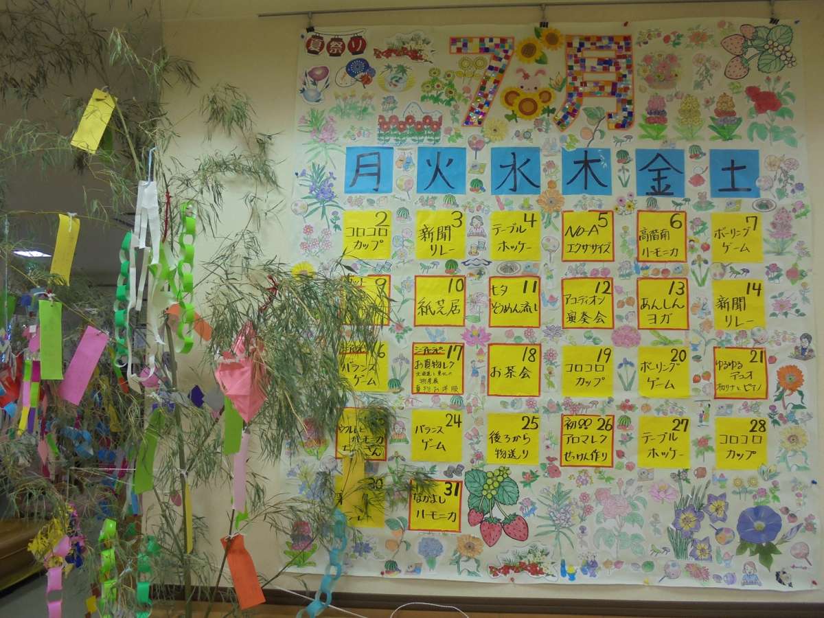 7月のレクリエーションカレンダーの隣には笹の葉!!