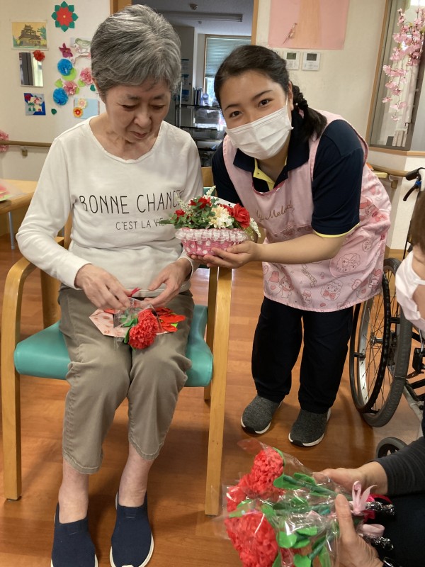 スタッフからは手作りのカーネーションと写真入れを贈りました!