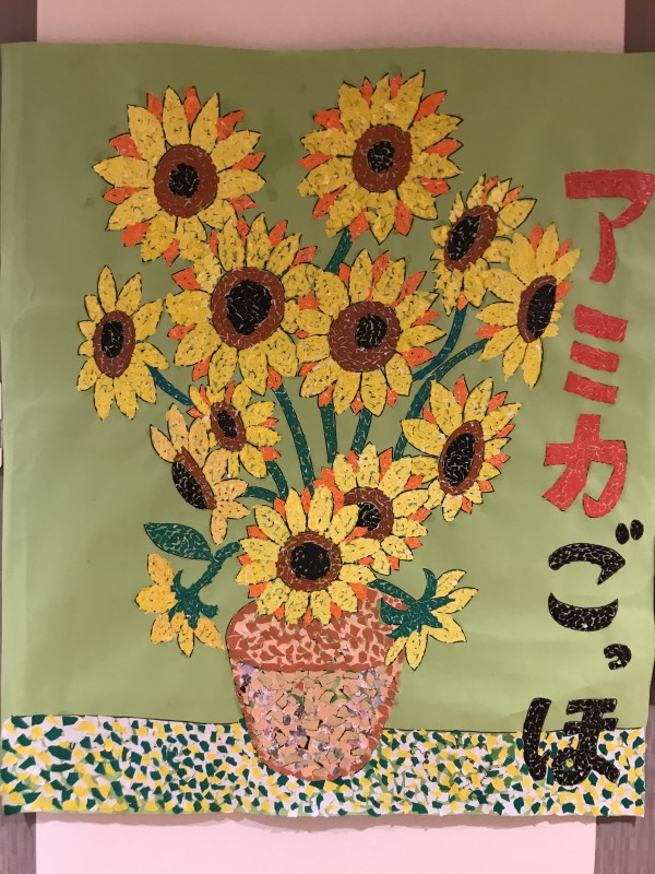 完成した切り絵は壁に貼り付けて掲示しました\( ˆoˆ )/