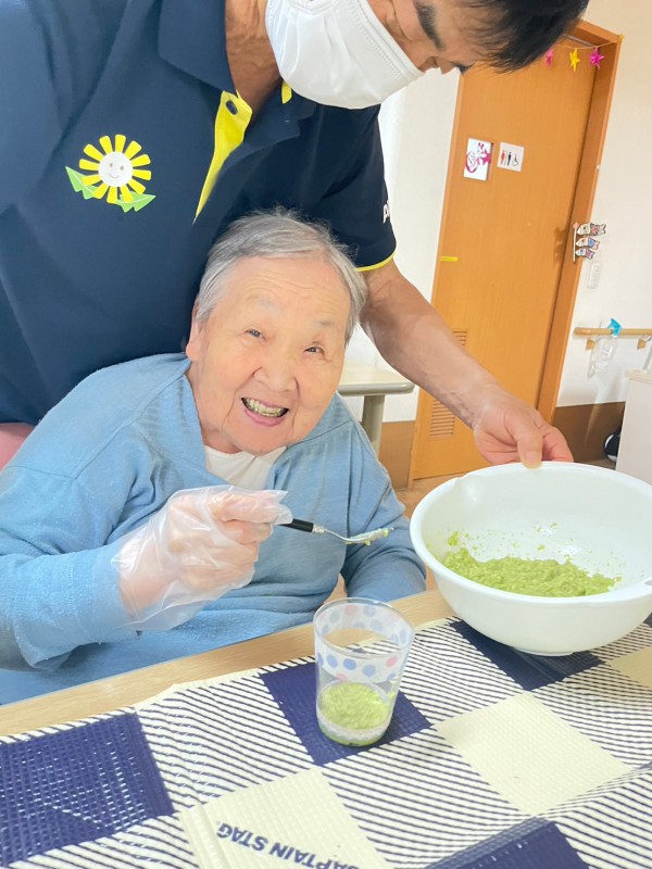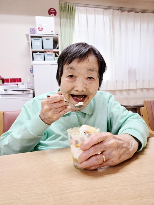 グループホームみんなの家大宮三橋 夏も近づく八十八夜~♪2階!抹茶パフェ作り!