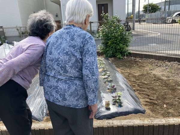 ご利用者様も「芽が出てきてるね」「楽しみだね」とお話されています。