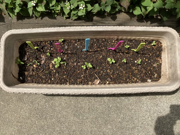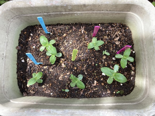 ホーム畑の野菜やプランターの花の芽が育ってきました。
